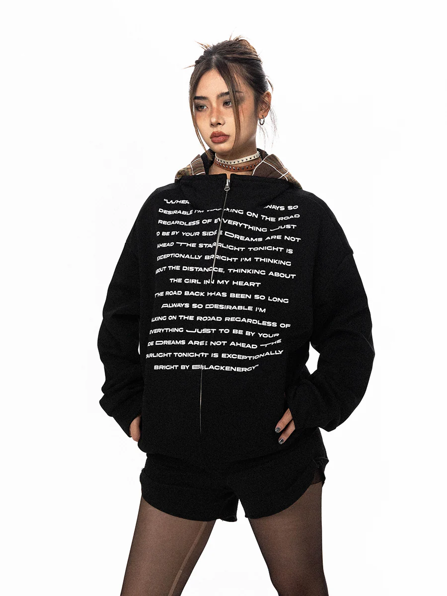 BLACKBB Gothic Print American High Street Zipper Up Jacket