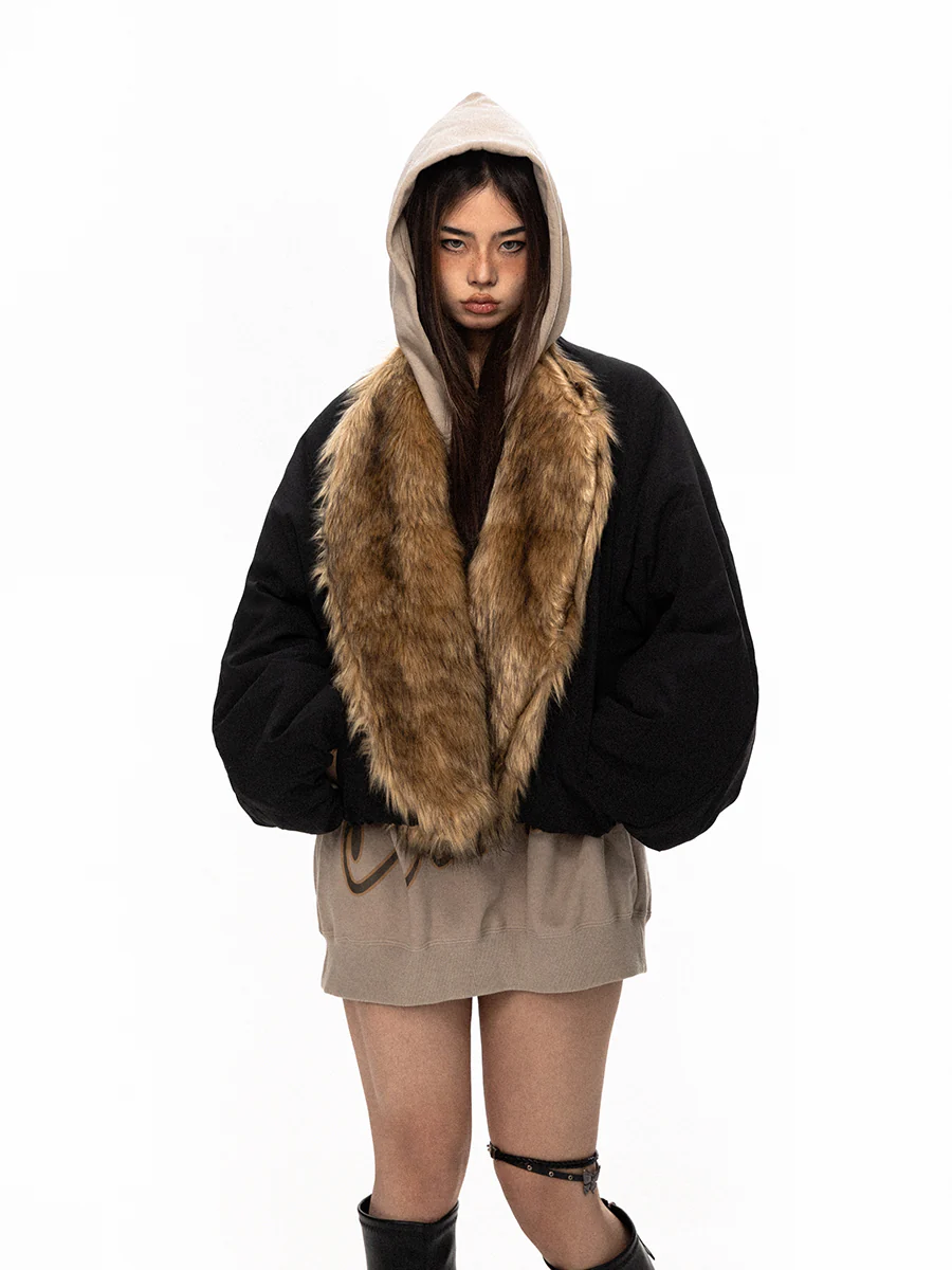 BLACKBB Fur Collar Wide Flight Cotton Jacket