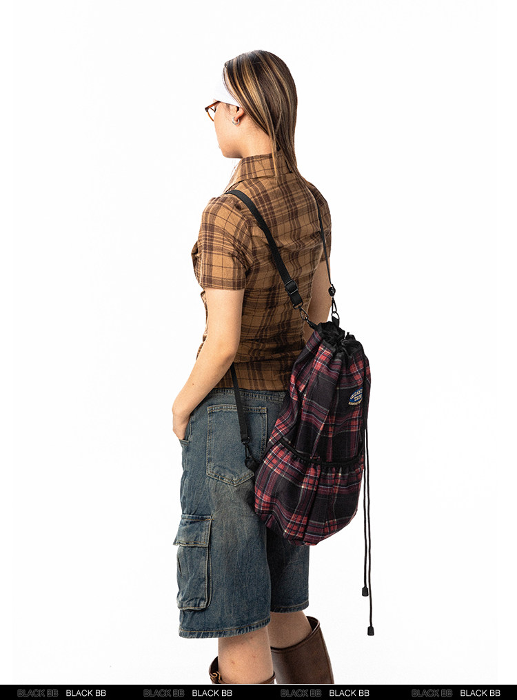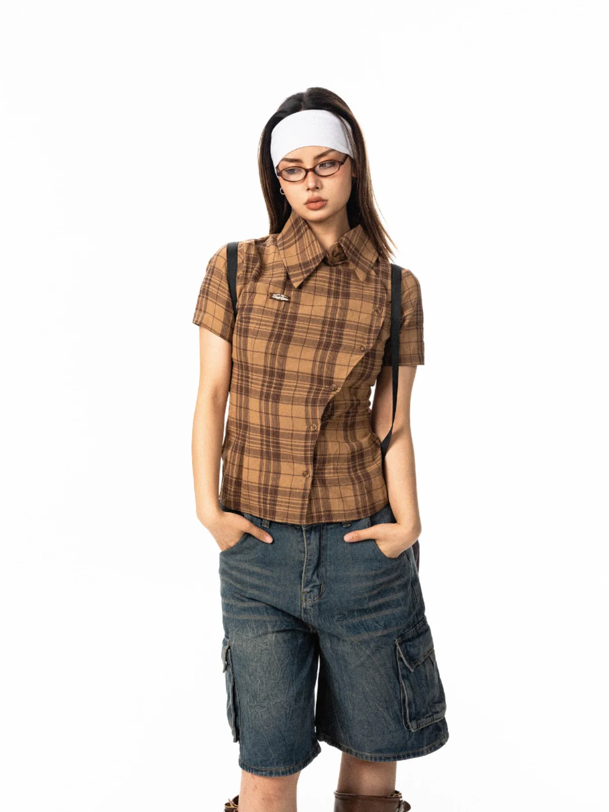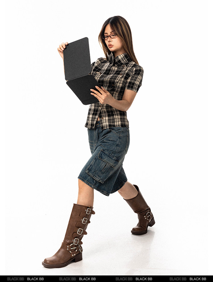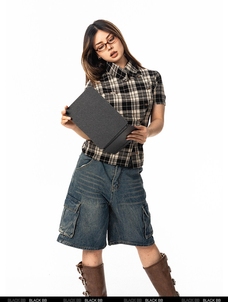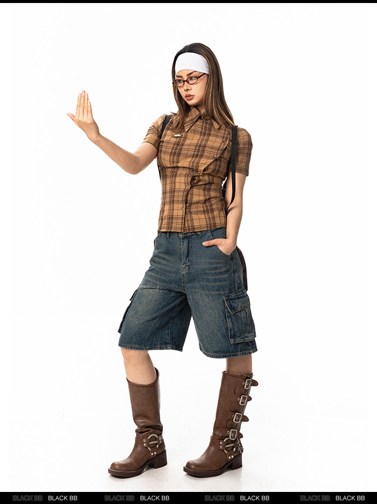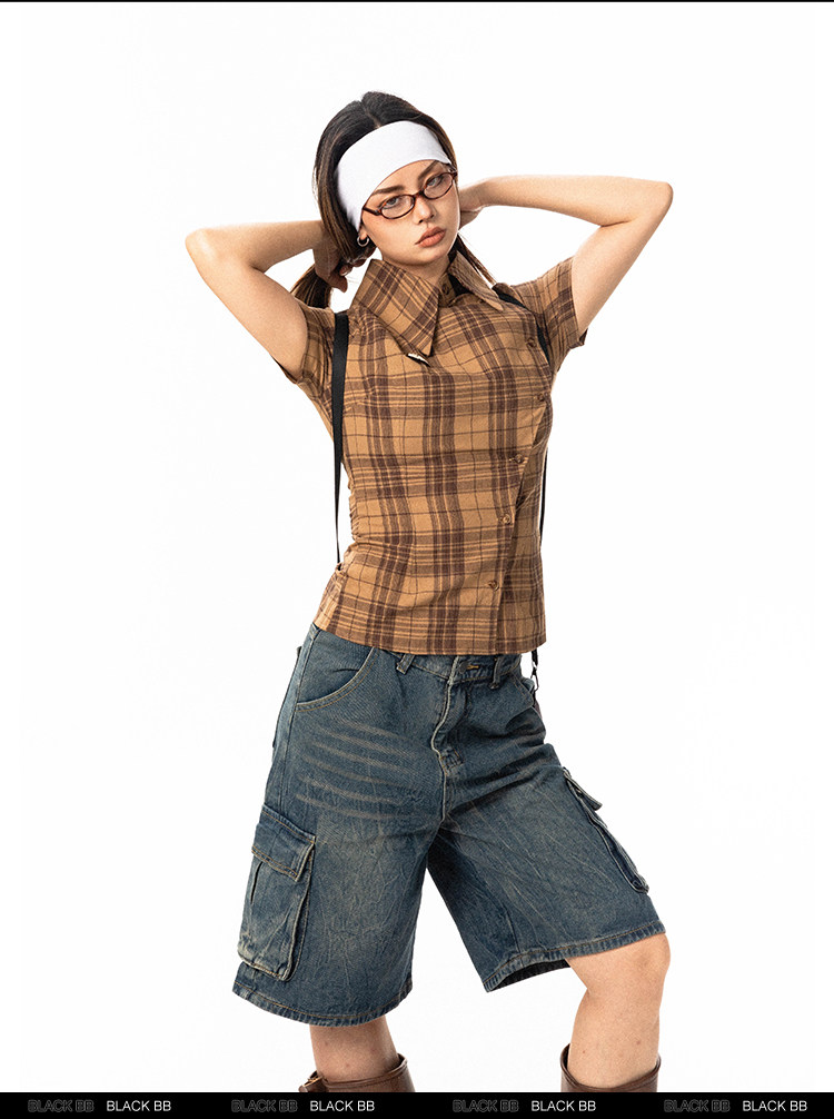 Pre-loved Diagonal Placket Check Skinny Shirt Slim Fit Tee