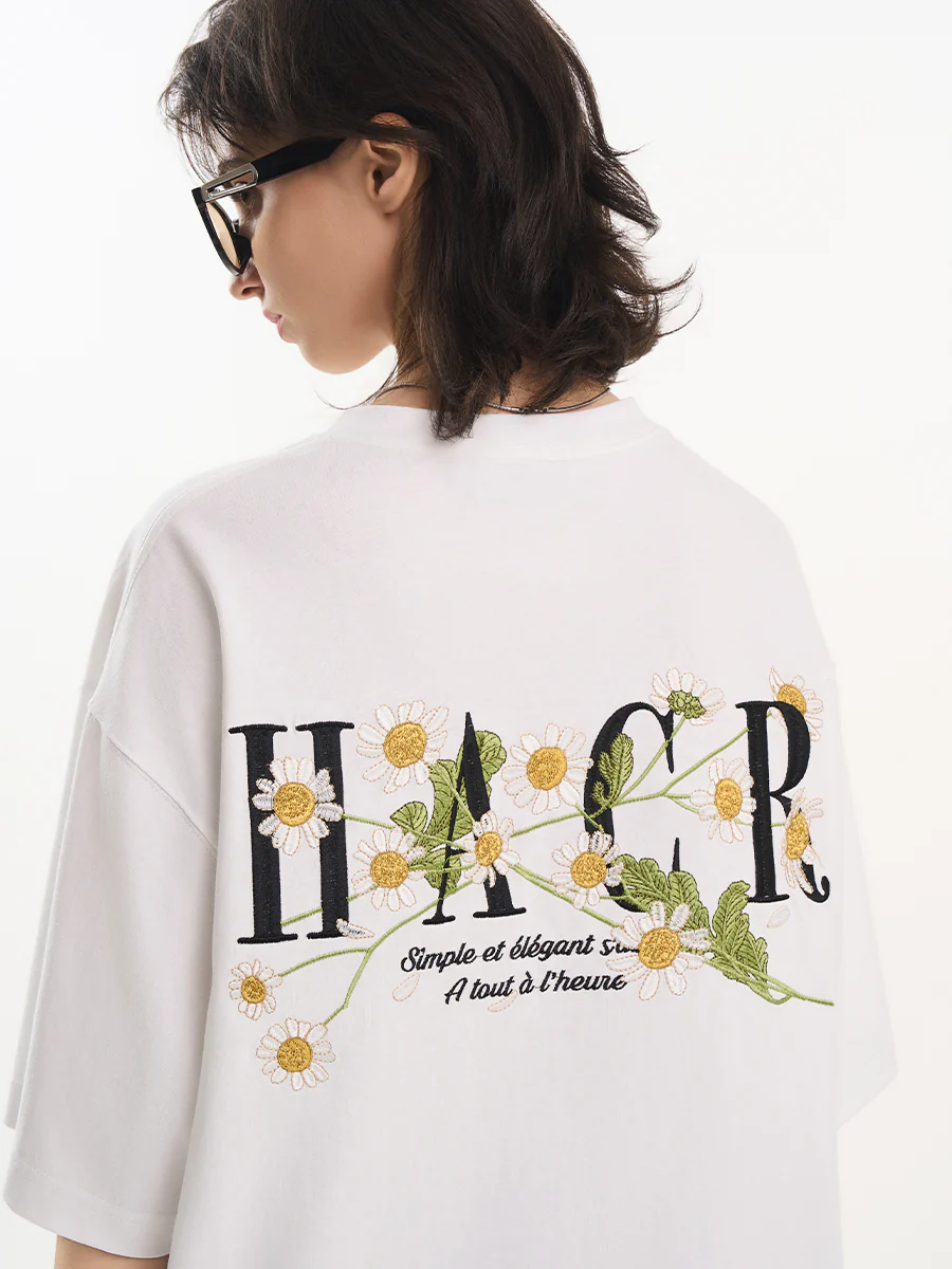 -70%harshandcruel ] floral typography, heavy-duty embroidered tee—